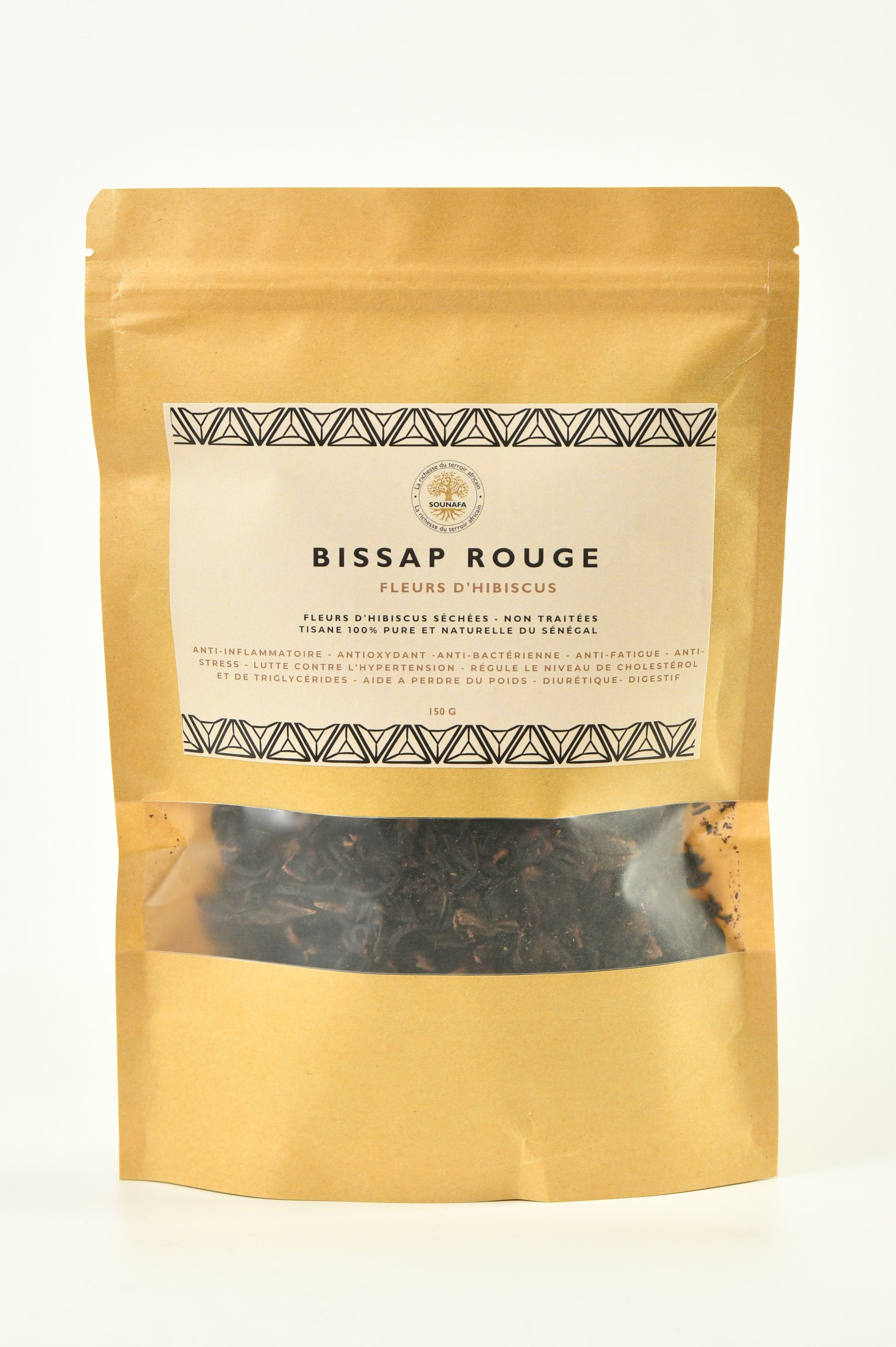 Nos fleurs d’hibiscus séchées sont emballées dans des sachets hermétiques en papier kraft alimentaire refermables pour préserver tous leurs bienfaits.