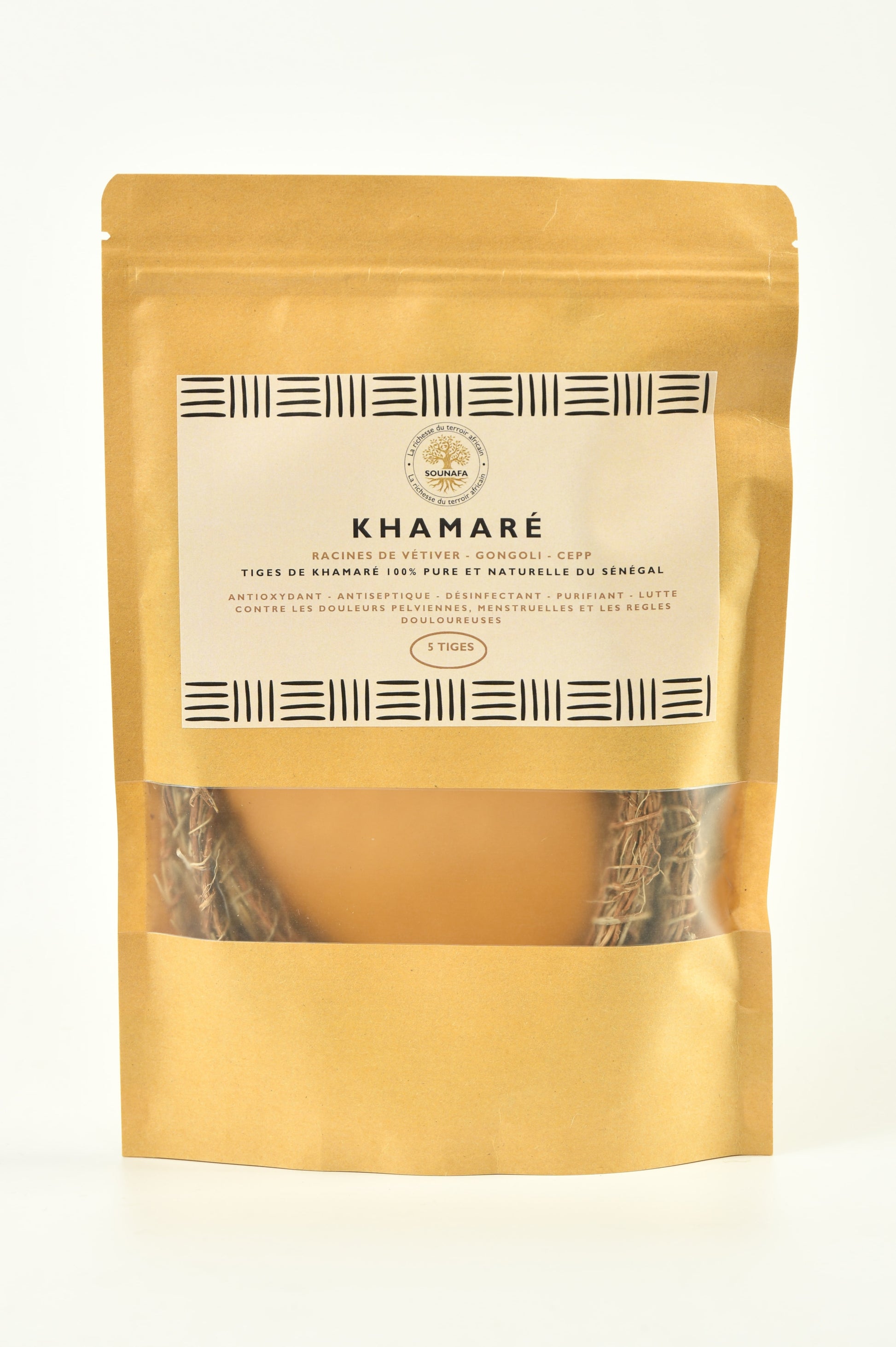 Nos tiges de khamaré sont conditionnées dans des sachets hermétiques en papier kraft refermables afin de préserver toutes leurs fraîcheurs.